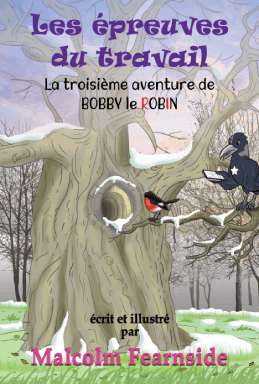 Son papa lui avait dit qu’il devait quitter le nid car il était maintenant considéré comme un adulte. Dans la tradition Rouge-gorge un adulte ne pouvait pas rester à la maison. Son papa lui avait dit qu’il devrait partir et trouver son propre territoire ailleurs quand il aurait l’âge adulte. C’était la première aventure de Bobby. C’était Noël. Il y avait de la neige sur le sol. Bobby avait du mal à trouver un endroit convenable et de quoi se nourrir. Finalement il trouva une maison qui avait une mangeoire et de la nourriture. Il pensa que les habitants de la maison aimaient les rouge-gorges parce qu’à travers la fenêtre il apercevait beaucoup de petites photos de lui-même sur cartes de voeux suspendues aux murs. Il était heureux. Il avait trouvé son nouveau territoire. Il n’y avait qu’un seul problème: un chat tigré se trouvait près de la mangeoire et un chien dormait dans sa niche! Le courageux Bobby réveilla le chien pour chasser le chat. Puis il s’envola vers la mangeoire. Il n’avait plus qu’à trouver un endroit covenable où s’installer avant de construire son premier nid.